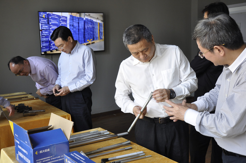鈕新強(qiáng)院士、謝先啟院士、陳建兵教授參觀自鎖錨固產(chǎn)品展示廳