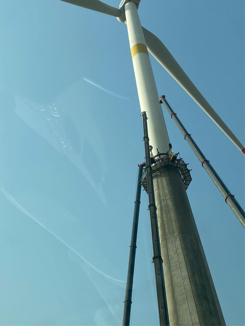 其次要解決的問題是人員的安全問題,一個是高空防寒,一個是防疫。65米處的風(fēng)速很大,且溫度極低,這對施工工人而言是一個重大的考驗(yàn)。巨成為此專門準(zhǔn)備了防寒物資,解決在高空寒冷天氣下的防寒問題。公司總部位于武漢,在2020年初的疫情中公司總結(jié)出了一套行之有效的防疫措施,如個人防護(hù)、體溫監(jiān)測、定點(diǎn)接送、健康日報等,在防疫安全的前提下有序開展工作。