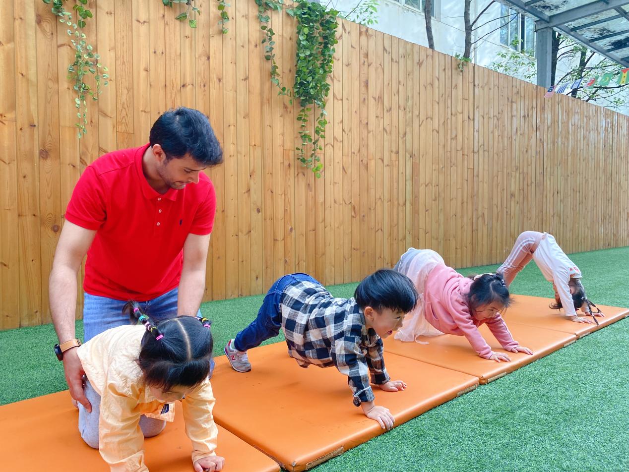 師資配備:各班除帶班老師外,還另配備中外教英語老師、合唱老師、形體老師等專業(yè)課老師;從托班開始,全天浸入式英文環(huán)境,除了每天一節(jié)英文課,中外教全天陪伴幼兒的一日生活;