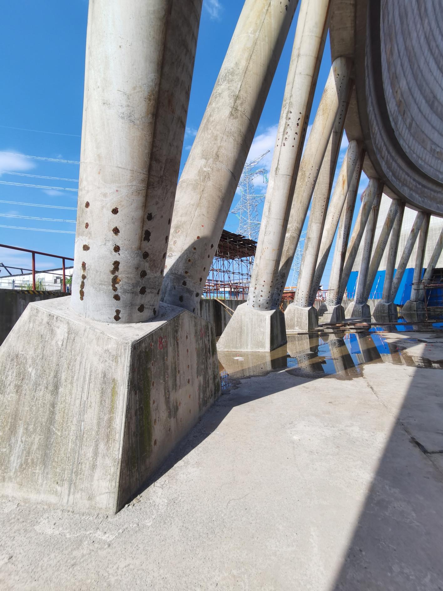 豐城電廠7#冷卻塔因發(fā)生過特大安全生產(chǎn)事故,為各方所關(guān)注。2020年復(fù)工后,巨成結(jié)構(gòu)憑借過硬的技術(shù)實力,榮譽承接了冷卻塔筒壁設(shè)計與加固工程。該工程屬于高危項目,開工前,巨成結(jié)構(gòu)的設(shè)計方案和施工組織設(shè)計均通過了專家論證。其中采用的多項巨成專有技術(shù)也得到了各位專家的認(rèn)可,如:擴孔自鎖錨固技術(shù)保證新舊混凝土緊密結(jié)合、補償收縮細(xì)石混凝土保證施工質(zhì)量、便攜式鋼平臺保證施工安全、曲線施工升降機保證垂直運輸。