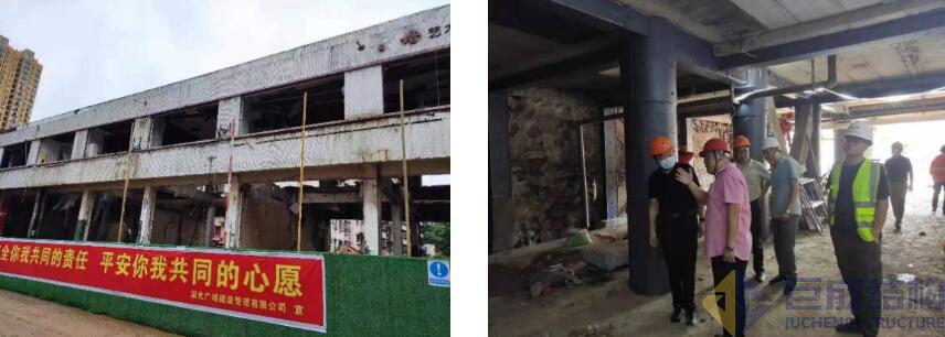 2021年6月25日,十堰市“6.13事故”指揮部邀請巨成結(jié)構(gòu)專家前往十堰對部分受損建筑進(jìn)行研判。巨成立即組織由周劍波教授、廖杰洪博士、王小兵工程師組成的專家組趕往十堰。在聽取情況介紹和現(xiàn)場踏勘后,巨成專家組給出了安全、高效的加固方案。業(yè)主方對專家組中肯、可行的方案表示肯定。經(jīng)指揮部向十堰市委市政府匯報(bào),由巨成結(jié)構(gòu)對離爆炸點(diǎn)最近的兩棟房屋進(jìn)行應(yīng)急加固搶險(xiǎn)。
